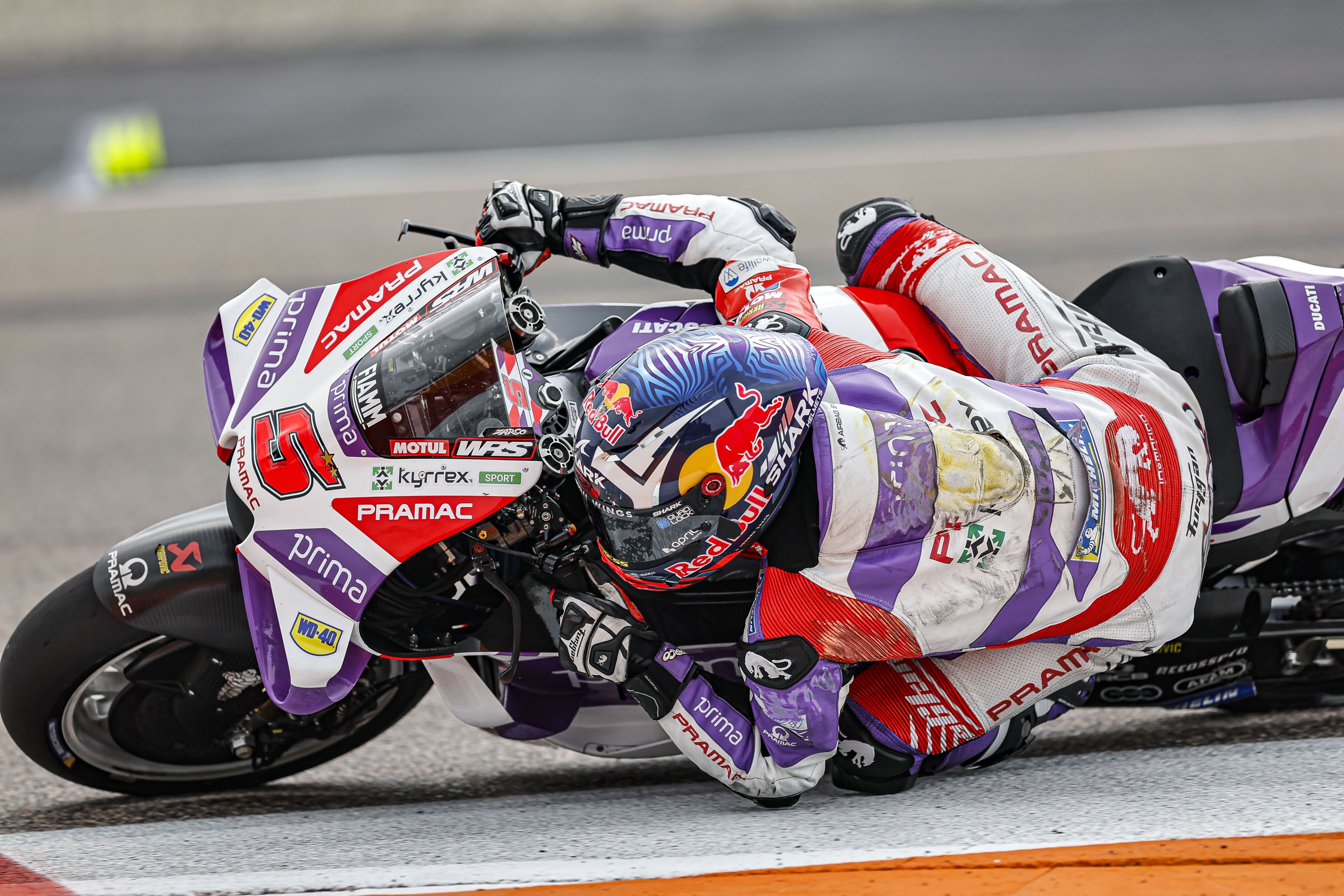 Ce week-end nous avons quelques problèmes et si je cherche à être assez propre, à passer correctement et à accélérer il y a chute. C'est un peu dommage parce que le départ avait été bon et le premier freinage aussi. J’ai eu la lucidité de voir Marini qui était complètement en perdition et qui a fait une grosse chute, je pensais même que Marini et Bezzechi étaient out mais Marco est remonté très très fort, c’était impressionnant.