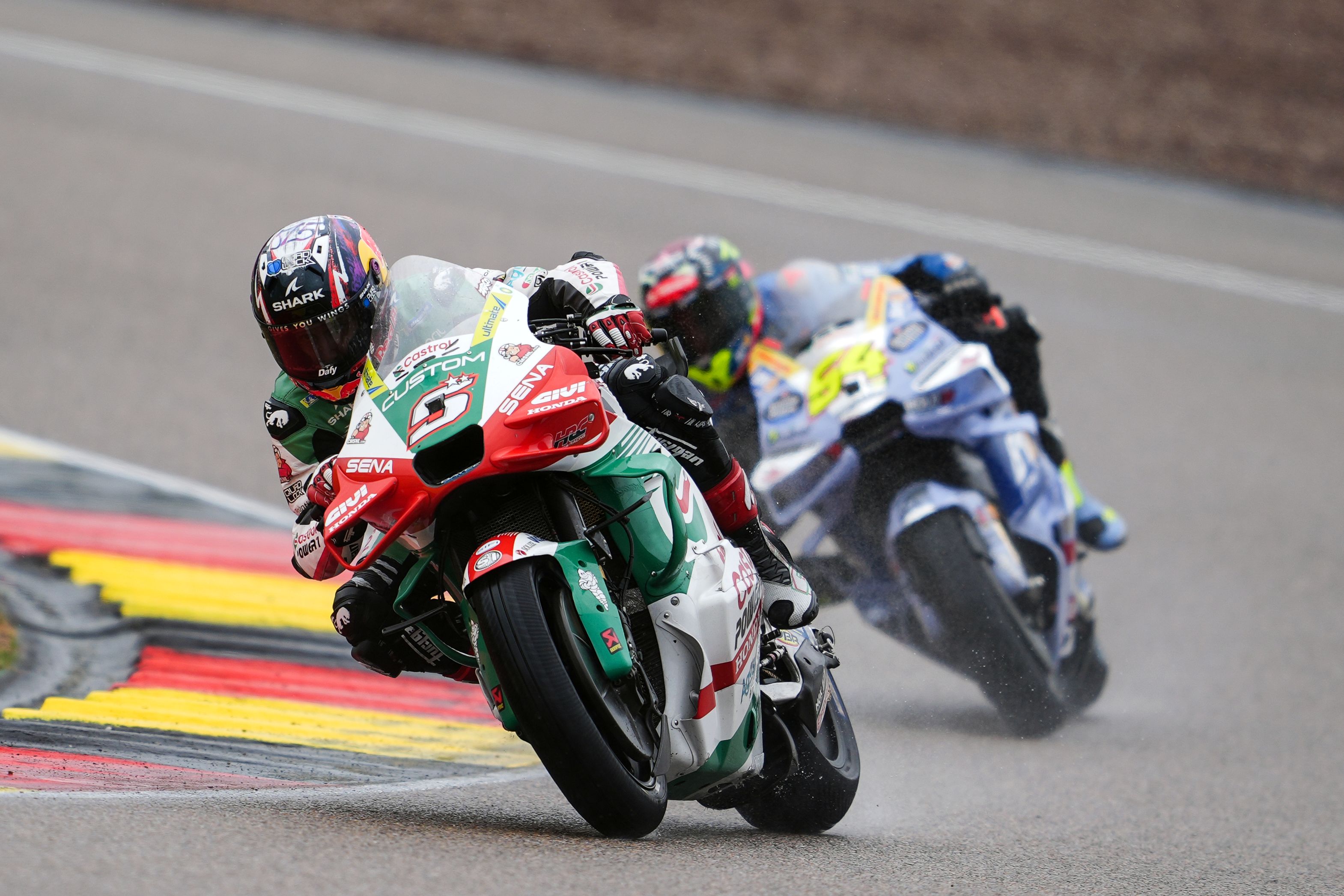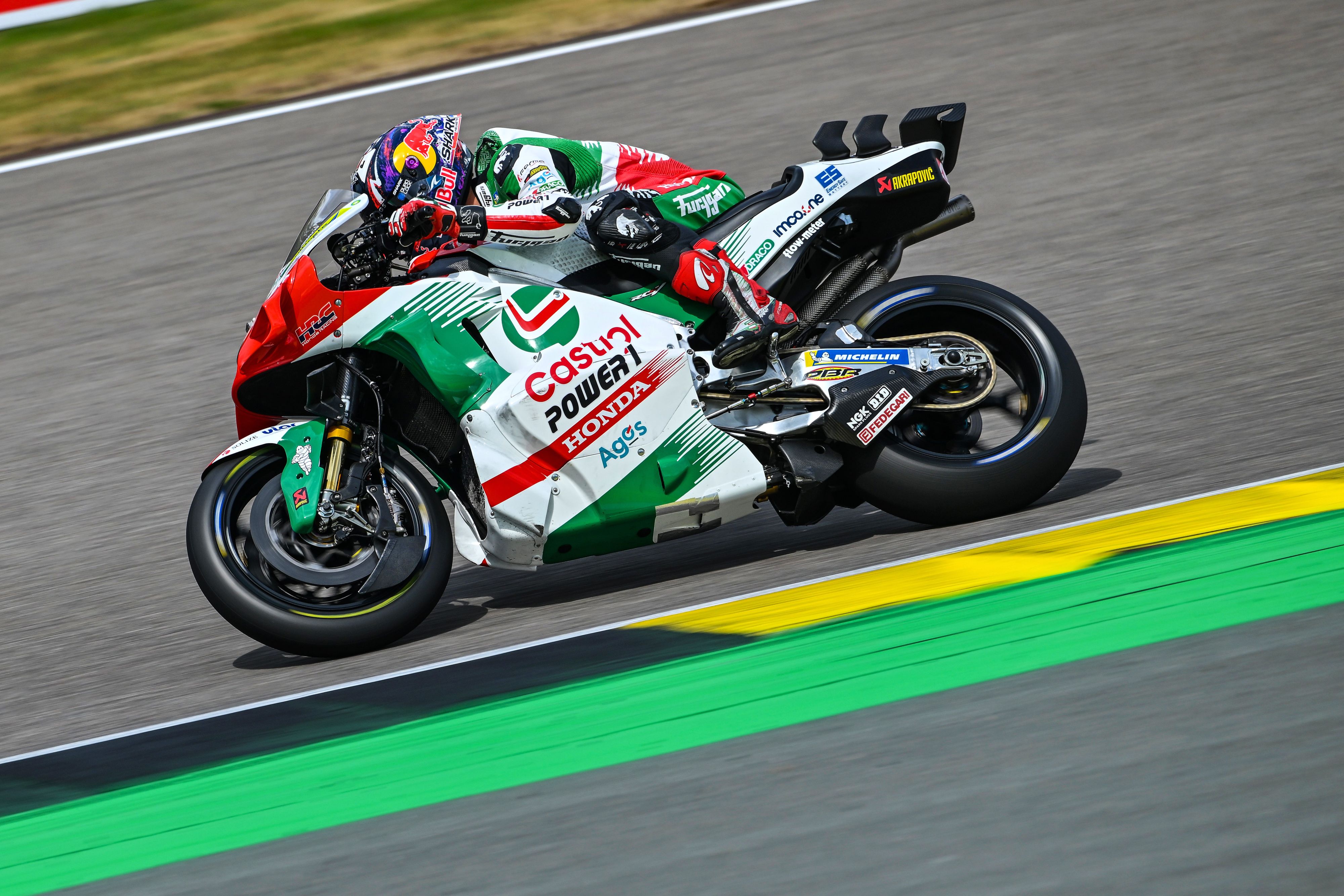 Le pilote CASTROL Honda LCR Johann Zarco a chuté pendant la course de dimanche au Sachsenring.