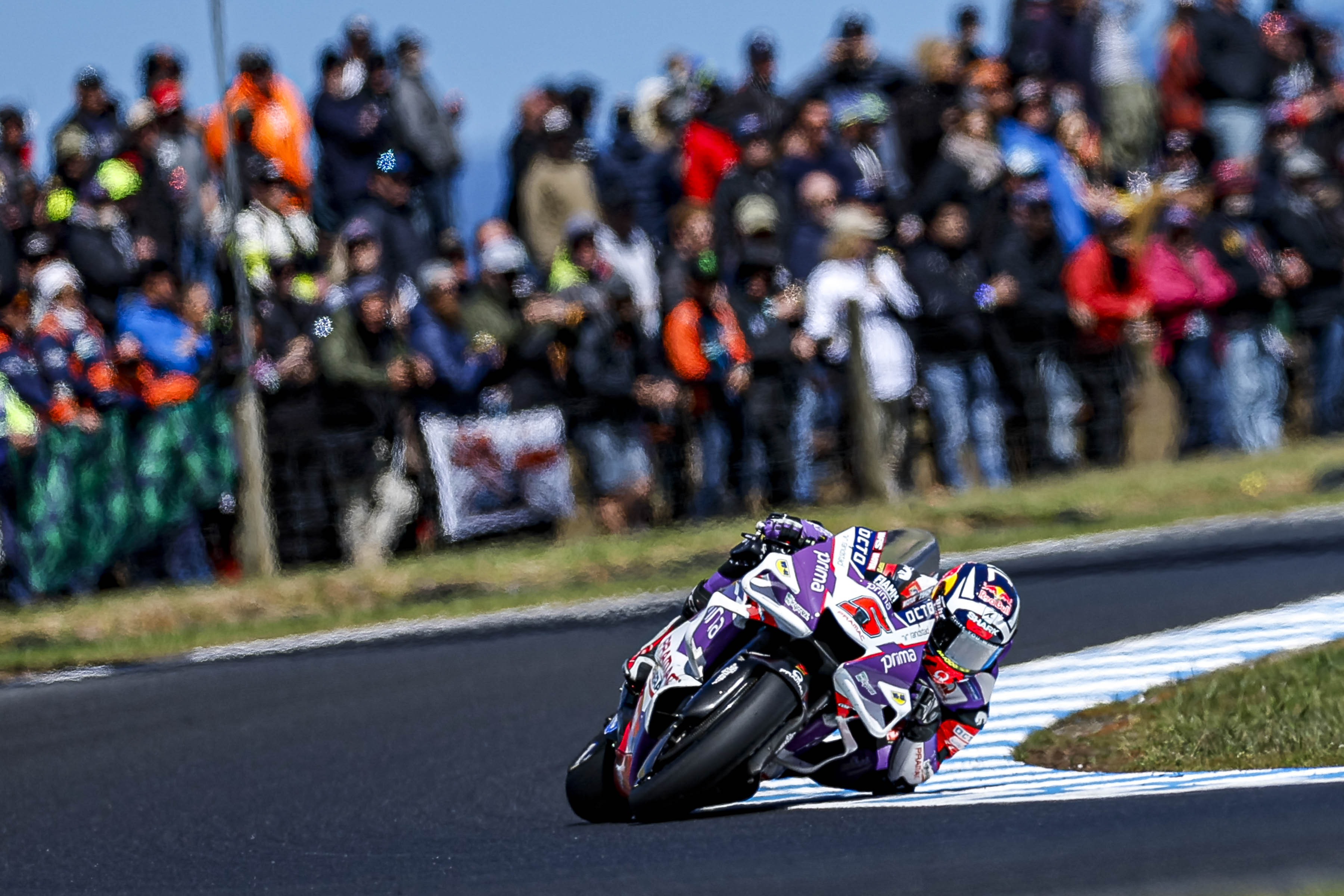 "J'ai eu beaucoup de wheeling en deuxième et troisième vitesses et la puissance s’est donc coupée. Mon système pour le départ n’a pas fonctionné et je n’ai pas pu faire redescendre la moto. Cela m’a coûté beaucoup de positions, mais ensuite, également, je n’ai pas pu bien placer la moto au premier virage avec la moto lourde. Je n’ai donc pas pu prendre le risque de doubler car les autres étaient bien plus à l’aise en début de course. Mais ce que j’ai vu, c’est qu’ils forçaient beaucoup sur le pneu, donc après juste trois tours, ce groupe de derrière peinait déjà avec le pneu. Donc à partir de ce moment, j’ai commencé à revenir et c’était bien d’avoir un bon rythme. J’ai vraiment beaucoup donné et il y avait beaucoup d’endroits où j’étais très fort. À d’autres, moins, et j’ai commis une erreur derrière Marini quand je suis arrivé sur le groupe de tête. J’ai essayé de me battre et j’ai eu de bonnes bagarres, avec Brad, avec Aleix et aussi avec Bastianini. Nous avons fait une bonne course, mais la dernière bagarre, avec Aleix et Binder, m’a fait perdre le contact avec le groupe du top cinq où était Bastianini. Il y avait donc du bon rythme et c’est vraiment dommage pour le début, et c’est un signe que je peux être très rapide mais le feeling sur la moto n’est pas encore le bon. En ayant ça, dès que je veux mettre la moto dans le virage de façon naturelle, j’aurai toujours le même problème en début de course. Si nous pouvons trouver la solution, puisque mon style est différent, alors peut-être que je pourrais devenir vraiment fort."